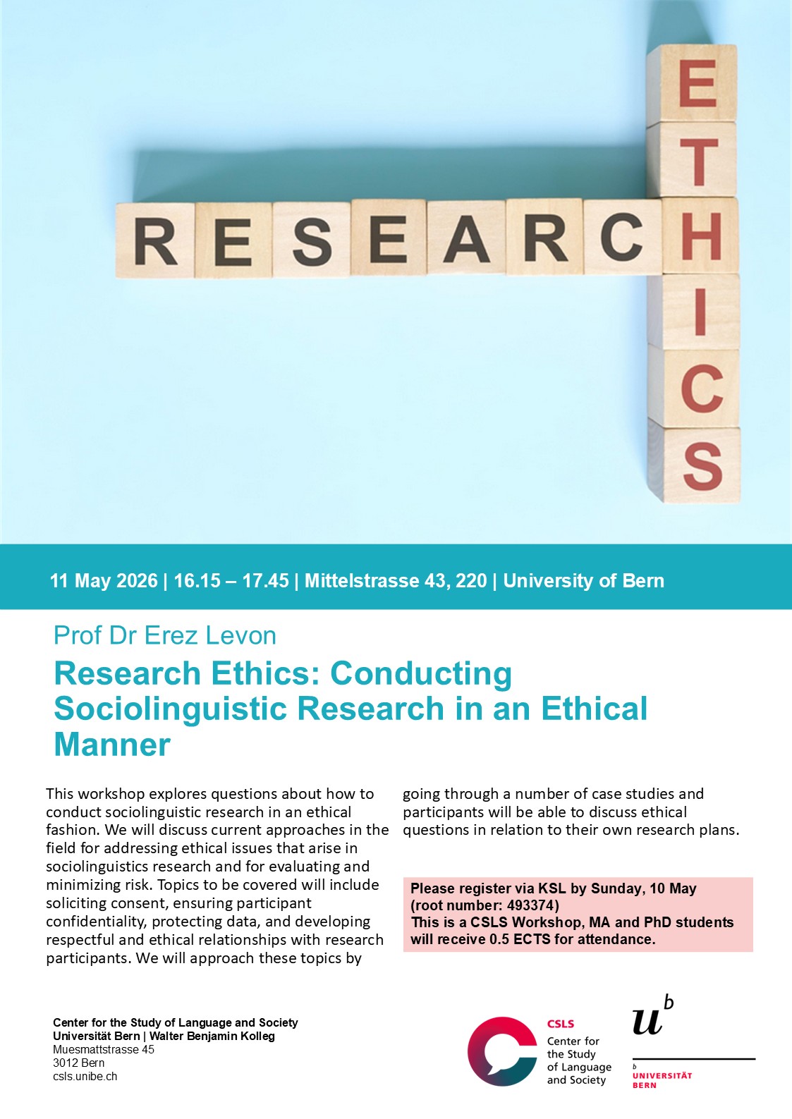 Le CSLS propose un MA en Sociolinguistique et un doctorat en « Langue et Société ».